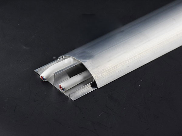 鋁合金地板線槽5號 :(弧形鋁合金線槽)(半圓鋁合金線槽) 弧形外觀設(shè)計(jì),不會絆倒行人便于行人和臺車通過,底部附帶雙面膠,地面、地板不用打釘,撕開就能,主要用于室內(nèi)地面明線安裝保護(hù),代替pvc線槽和塑料線管。鋁合金地線槽不僅外形美觀大方,有蓋子和底槽兩部分組成,安裝更加簡單方便。